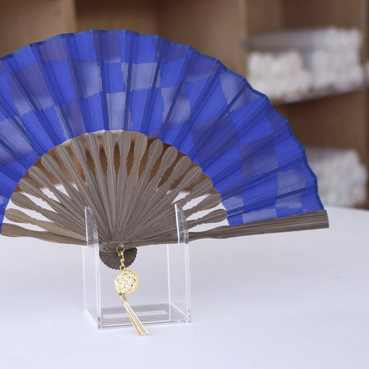 Folding Fan - MIYAKO(Blue Ichimatsu Pattern)