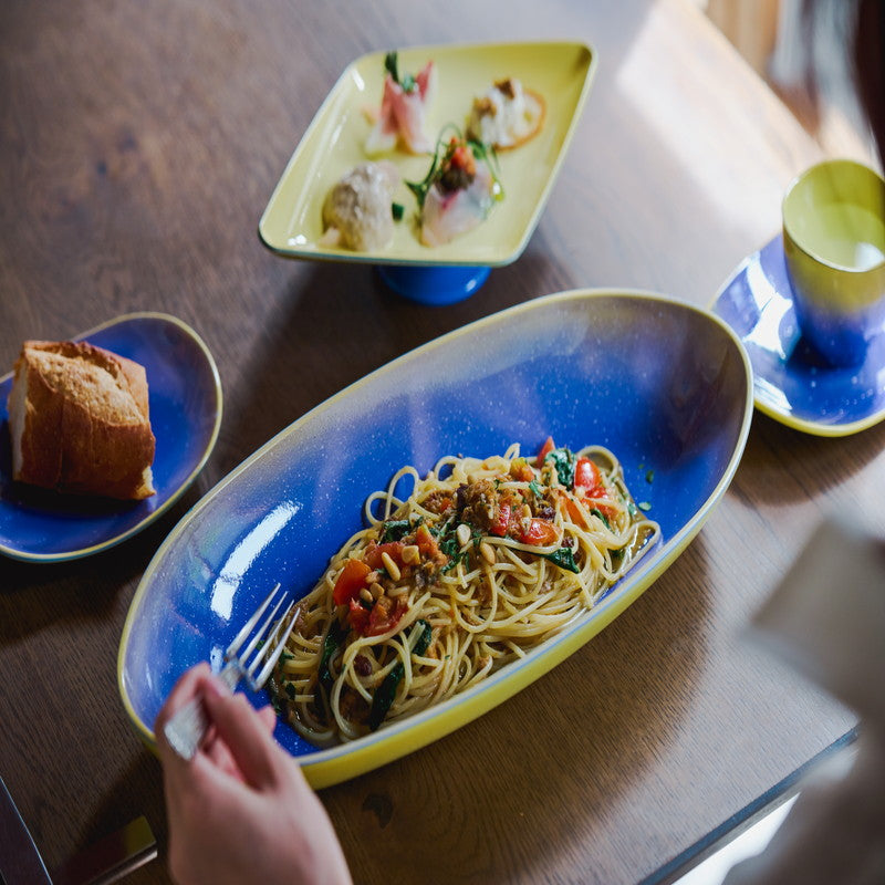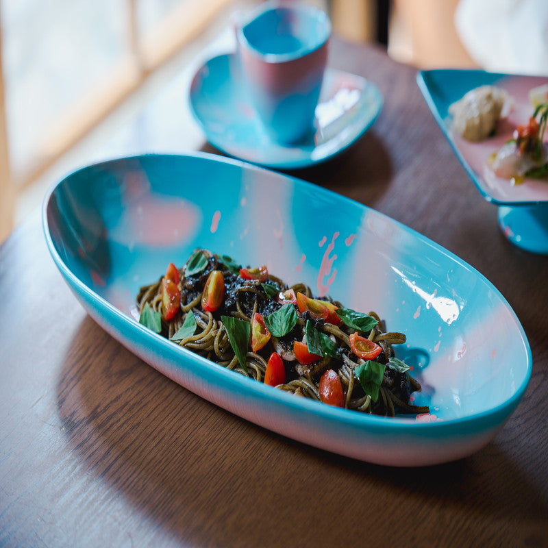 يتميز هذا الوعاء العميق للتقديم، على شكل قارب، بشكل واسع وطويل، مما يجعله مثاليًا لتقديم مجموعة متنوعة من الأطعمة معًا في طبق واحد سخي.