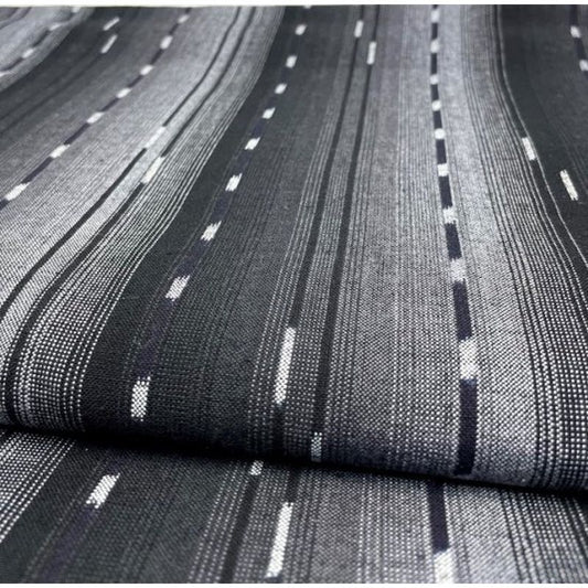 قماش KURUME KASURI - 4 خطوط باللون الأسود والرمادي Tategasuri