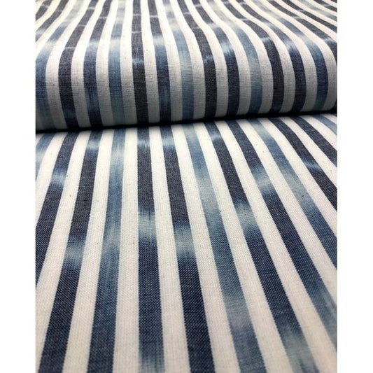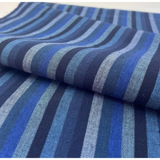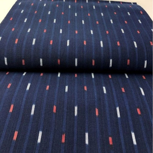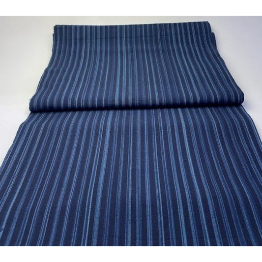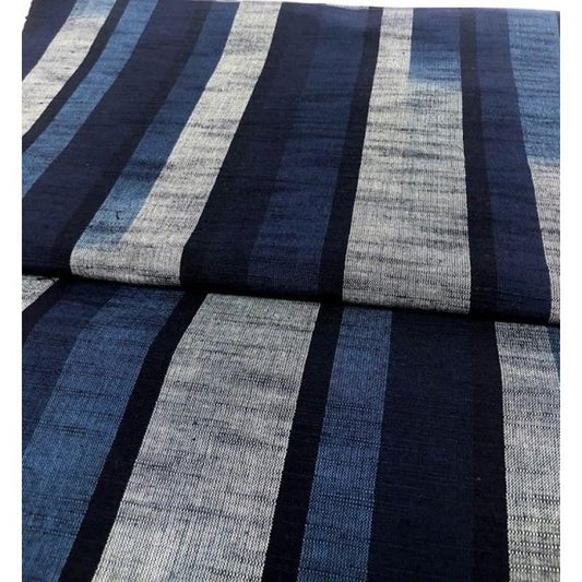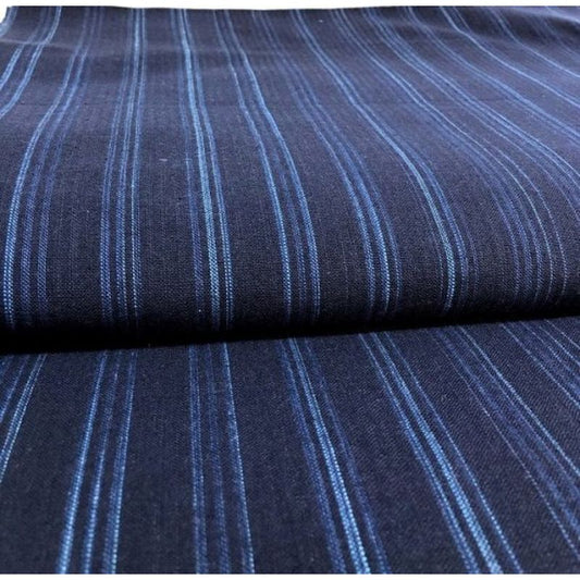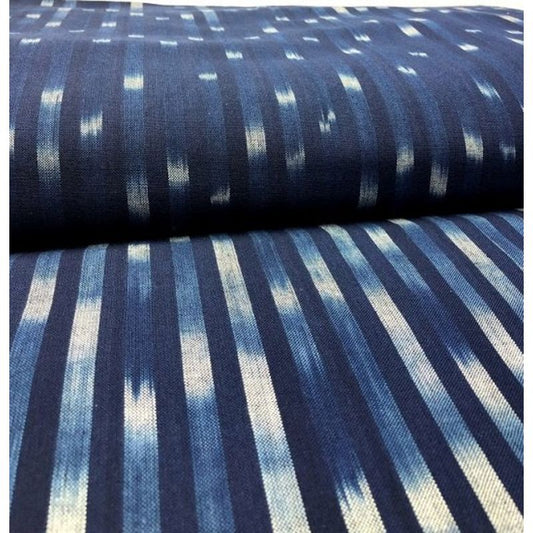 قماش KURUME KASURI - غزل نيلي غير متساوي دان صباغة مخطط باللون الأزرق الداكن
