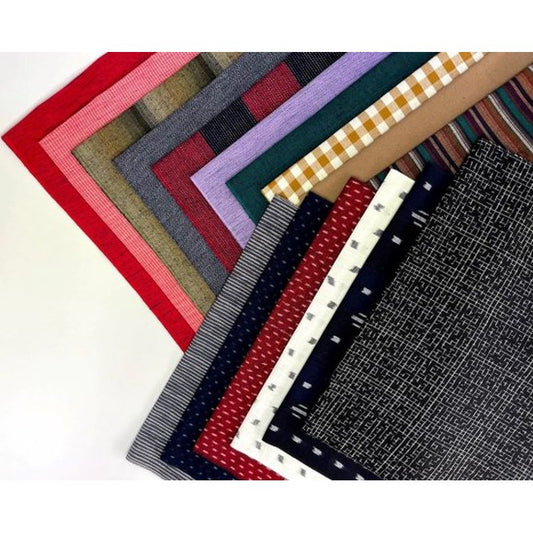 قماش KURUME KASURI - شريط كوموداما باللون الأخضر والأزرق الداكن والأحمر الخردل
