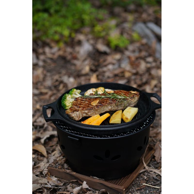 يمكن استخدام الغطاء كشواية، بينما يعمل الجسم الرئيسي كقدر. وعند تغطيته، يمكن استخدامه أيضًا لطهي أطباق مثل الجيوزا، مما يجعله قطعة متعددة الاستخدامات للطهي على المائدة.