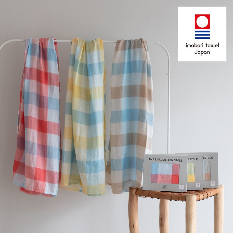 A stole made from double-layered gauze, offering a light and breezy texture for ultimate comfort. Easy to wash and keep fresh for everyday use. Its large size makes it versatile for various purposes, such as a lap blanket or sunshade. Packaged in a dedicated gift box, it also makes a perfect present.