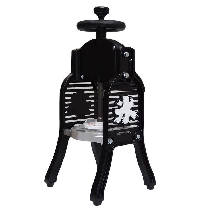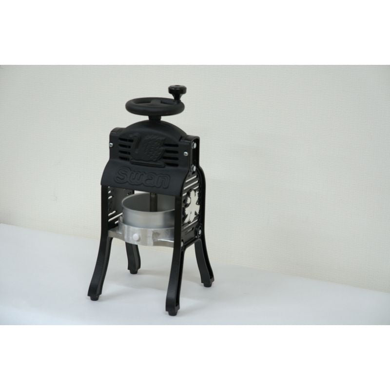 This black-bodied manual ice shaver is lightweight, user-friendly, and ideal for home use.