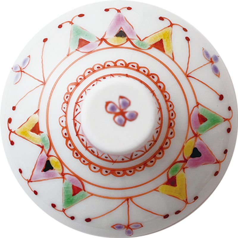 Mebae: The stem design is by Ginshu, known for his bright colors and charming overglaze painting. He inherits the overglaze techniques of the first Bunkichi, a celebrated master of Kutani ware.