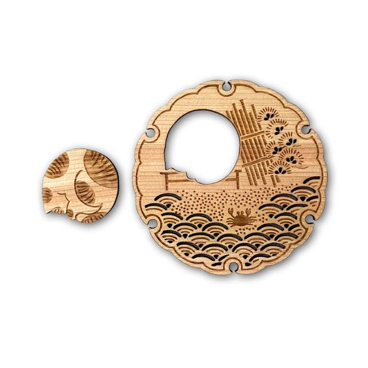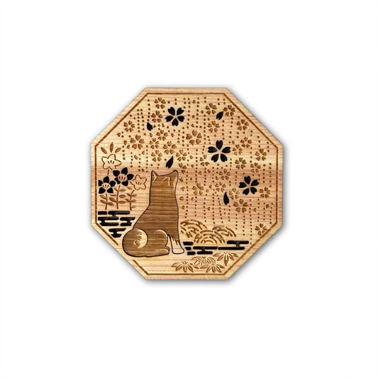 Chopstick Rest and Coaster Set - Weeping Sakura with Black Shiba