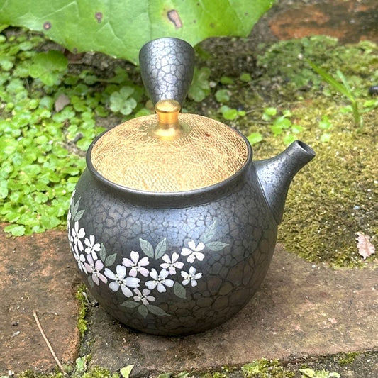 Teapot - SHORYU Tenmoku Glaze Round Shape Gold Lid Sakura Pattern
