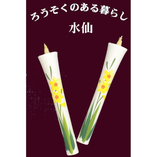 Hand-Painted Japanese Candles - Narcissus (Size 10 Set of 2)