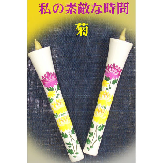 Hand-Painted Japanese Candles - Chrysanthemum (Size 10 Set of 2)