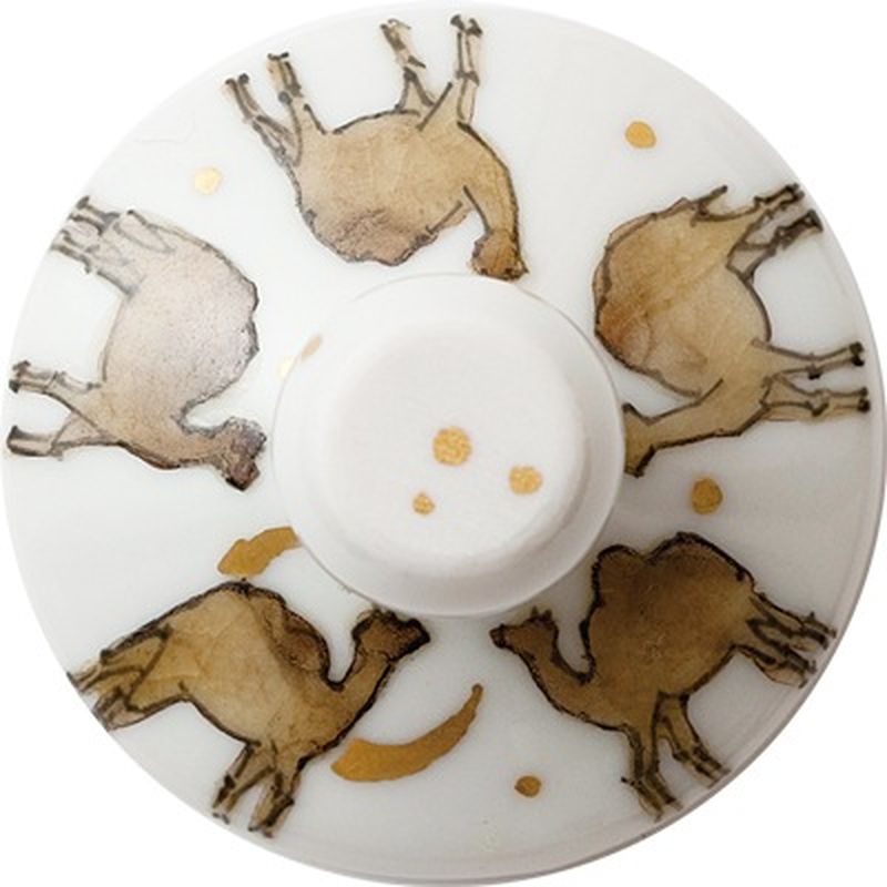 Tsukiyo no Rakuda: Ein im Mondlicht laufendes Kamel, mit feinen Linien gezeichnet.