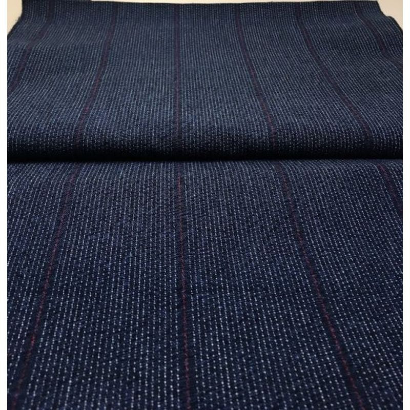 KURUME KASURI Stoff - TamaBunjin Nadelstreifen Blau Rot