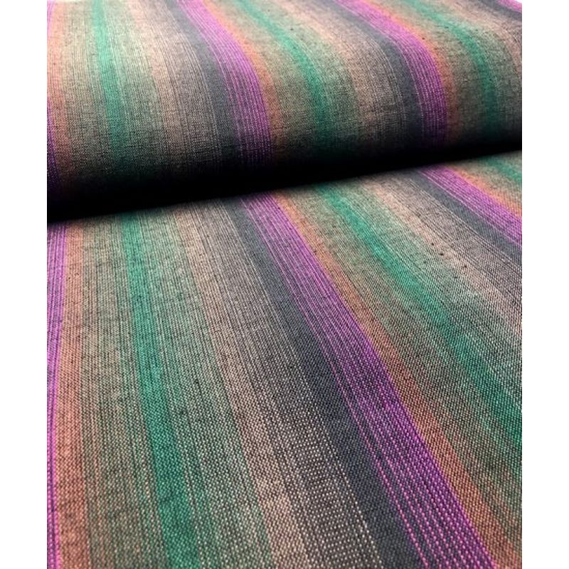 KURUME KASURI Stoff - 4 Streifen Grün Lila