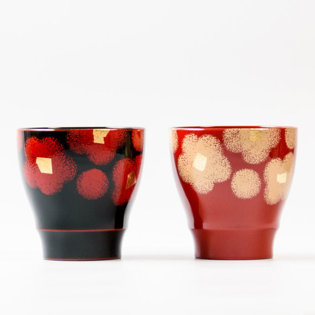 Paar Tassen-Set „Hana“, schwarz und rot, handgefertigte Urushi-Lackware