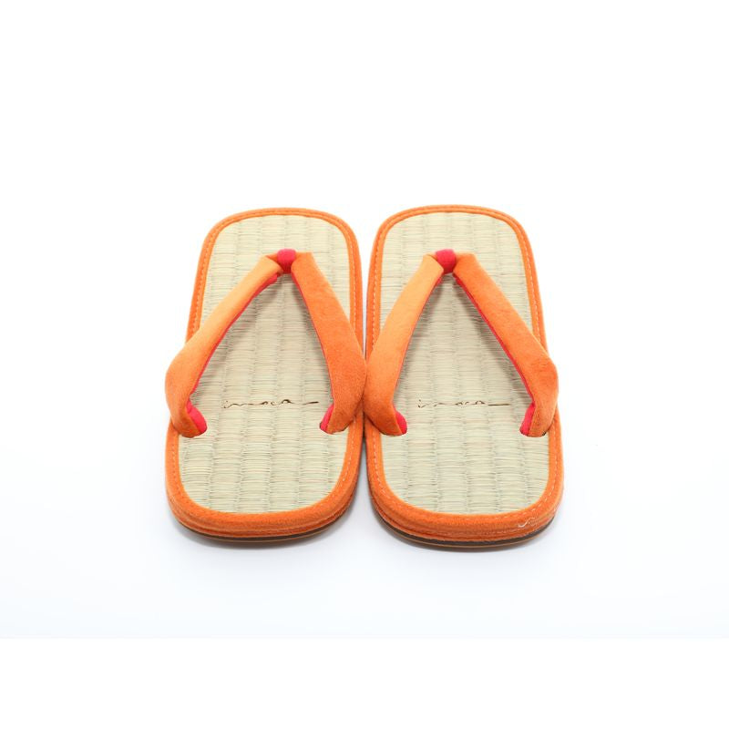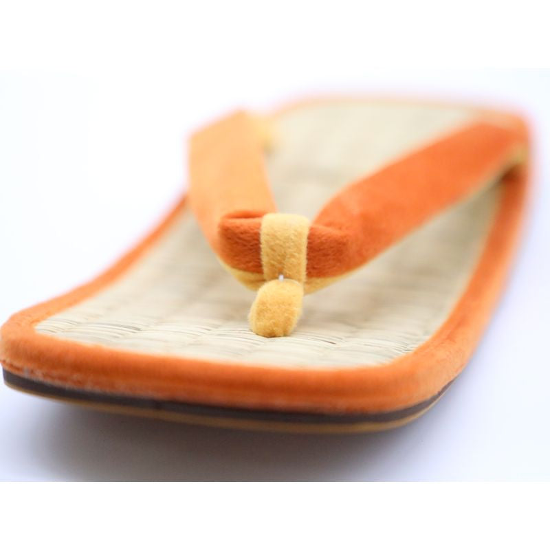 Dies ist ein Paar Setta-Sandalen, die aus dem originalen „Kishu Igusa“ aus dem IdoTatami Shop hergestellt wurden. Der Tragekomfort zeichnet sich durch ein sanftes und angenehmes Gefühl aus, als würde man auf einer Tatami-Matte laufen. Es sind 56 Farbvarianten erhältlich, sodass sie zu verschiedenen Stilen passen, einschließlich Jeans oder anderen lässigen Outfits, nicht nur zu traditioneller japanischer Kleidung. Beim männlichen Modell ist an der hinteren Ferse ein traditionelles Merkmal namens „Batei“ angebracht, ein Metallstück, das einem Hufeisen ähnelt. Das „Klick-Klack“-Geräusch beim Gehen gilt als stilvolle Note und ist eine traditionelle Handwerkskunst, die für ihre Geschichte bekannt ist.