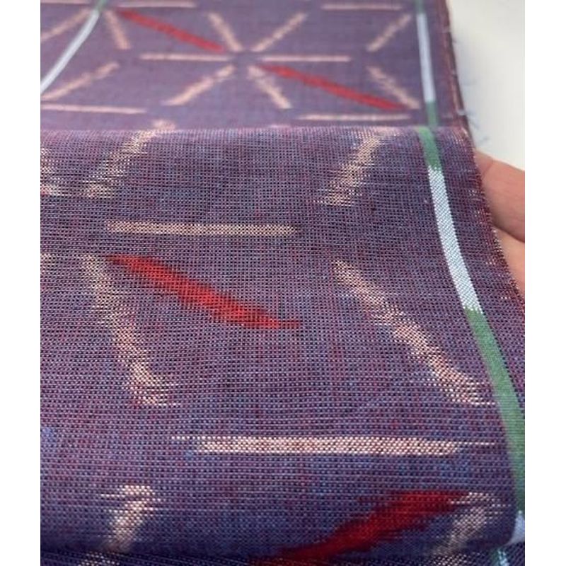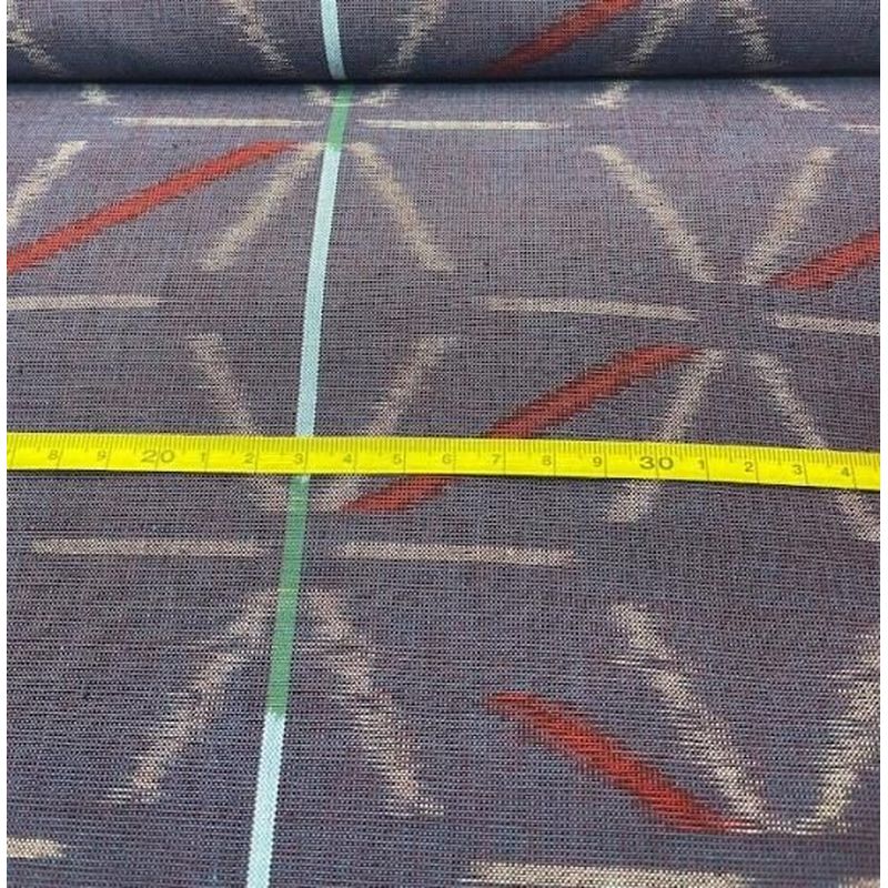 This textile features *tateyoko-gasuri*, a method that expresses patterns through the overlapping of both warp and weft ikat threads. Kurume is the last remaining production area that continues to weave tateyoko-gasuri on power looms. With both mechanized tying techniques and the skills of expert artisans, Kurume Kasuri is regarded as one of the highest forms of ikat weaving in the world.