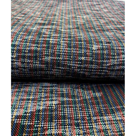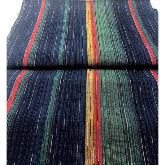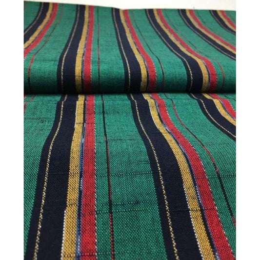 Tissu KURUME KASURI - Rayures Kumodama Vert Bleu Marine Moutarde Rouge