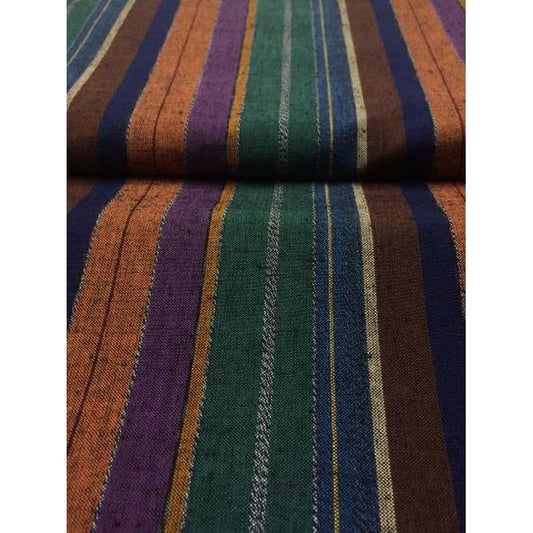 Tissu KURUME KASURI - Rayures Kumodama Vert Orange Rougeatre Violet