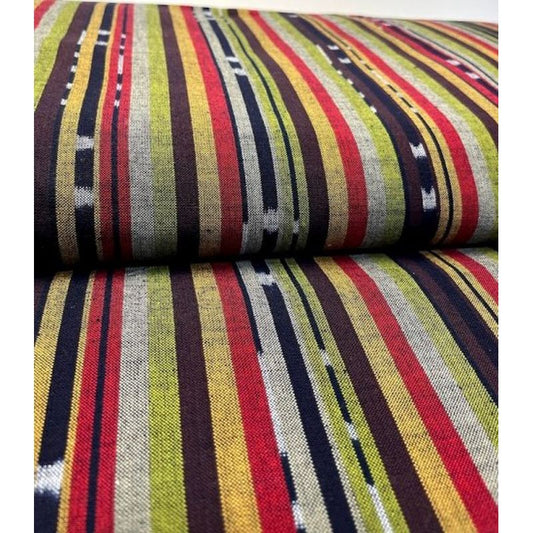 KURUME KASURI Tissu - 5 Rayures Aléatoires Rouge Vert
