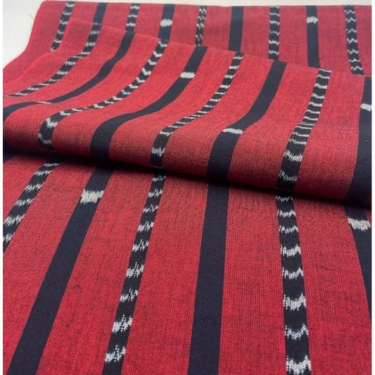 KURUME KASURI Fabric - Bamboo Kasuri 4 Stripes Red