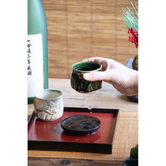 Ensemble de vaisselle à saké - Couleur métallique argent galène (dans une boîte en bois)