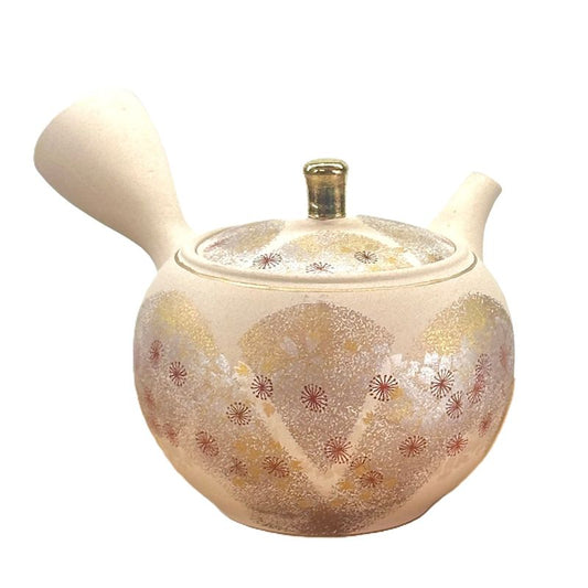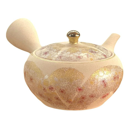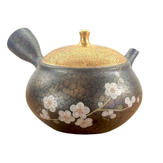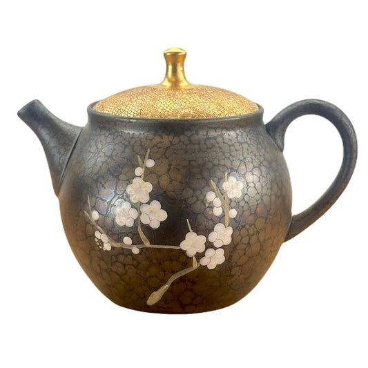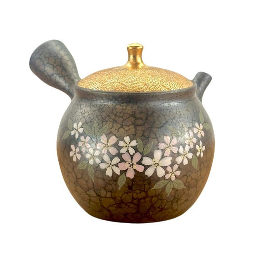 Teapot - Sekiryu Flat Shape Gold Sakura Carving