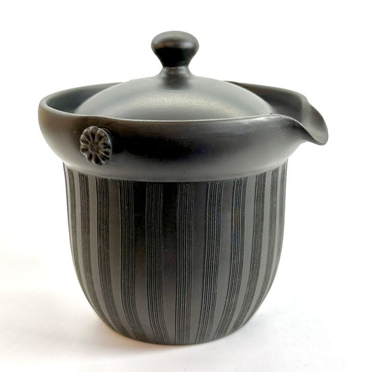 Teapot - GYOKKO Black Kiln-Change Fukuro Shape Engraved Lines