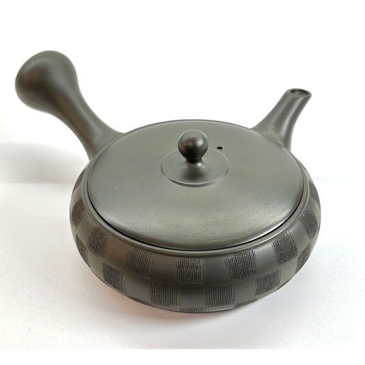 Teapot - GYOKKO Black Kiln-Change Flat Shape Line Ridge