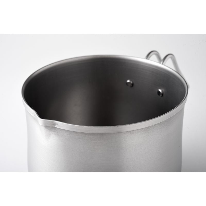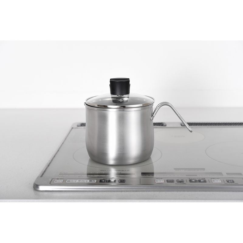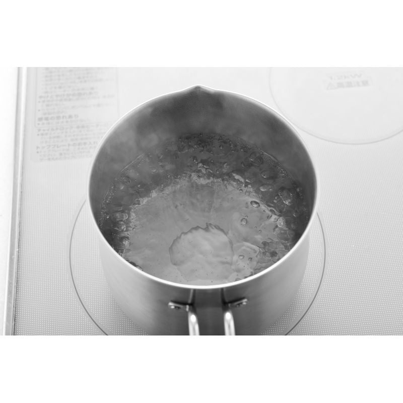 Cette seule casserole peut remplir huit fonctions : (1) faire bouillir de l'eau (2) faire bouillir (3) mijoter, (4) sauter, (5) frire, (6) cuire, (7) assaisonner et (8) conserver. La conception profonde facilite le mélange des ingrédients de la salade et empêche les éclaboussures d'huile lors de la friture. Les sachets de cornue peuvent également être chauffés debout. La forme arrondie permet de faire bouillir facilement de l'eau par convection et de cuire un délicieux riz. Le bec verseur le rend utilisable comme une bouilloire ou un pot à lait. Compatible gaz, induction, halogène, gaine chauffante et radiant.