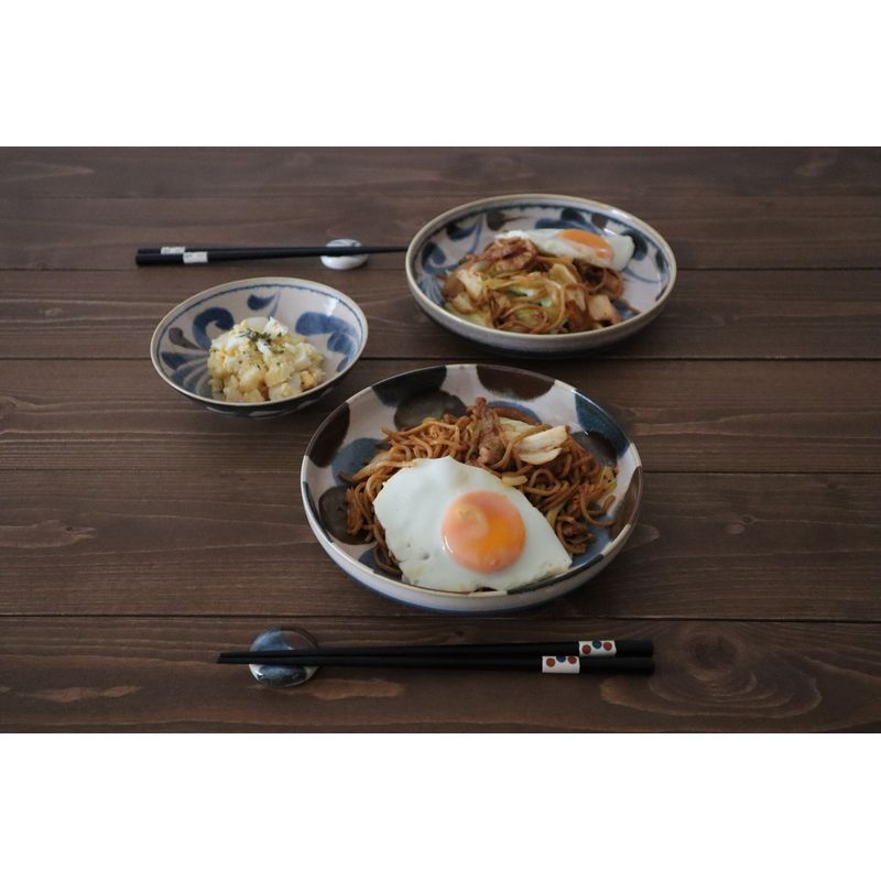 Un récipient pour apprécier la couleur indigo et la texture peinte à la main, Bleu brossé. Chaque pièce présente des variations uniques d'intensité de couleur, d'écoulement de glaçure et de motif pendant le processus de fabrication, donnant des articles vraiment uniques. Adoptez la texture peinte à la main. De plus, nous avons fabriqué un repose-baguettes doucement arrondi, conçu pour évoquer un sentiment de calme. Veuillez en profiter avec vos baguettes.
