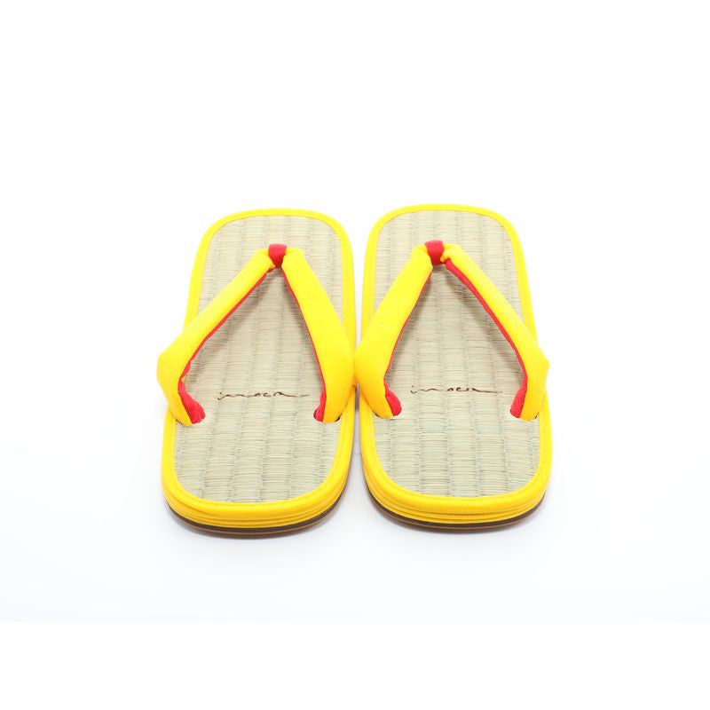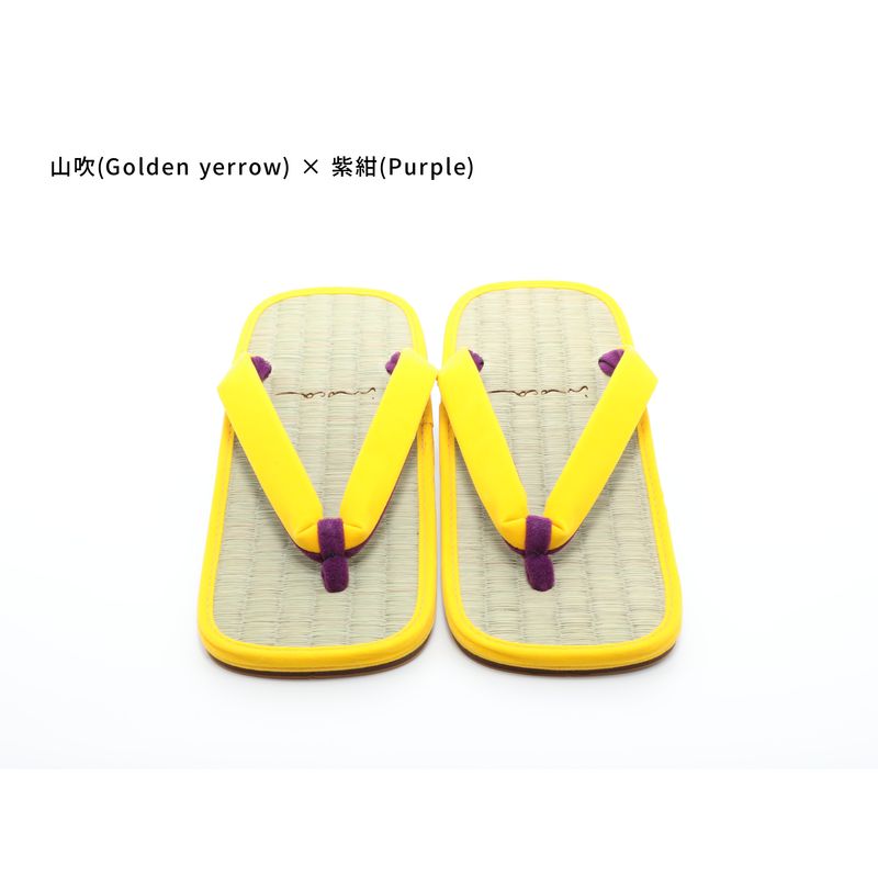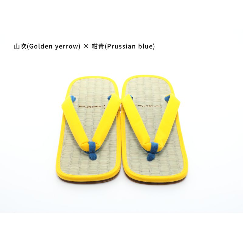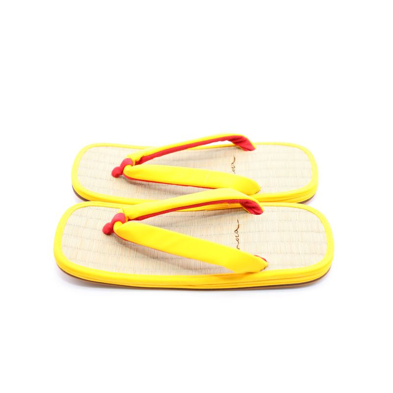 Il s'agit d'une paire de sandales setta fabriquée à partir du modèle original « Kishu Igusa » de la boutique IdoTatami. Le confort de port est caractérisé par une sensation douce et agréable, comme si l'on marchait sur un tatami. Il existe 60 variantes de couleurs disponibles, ce qui permet de les assortir à différents styles, notamment avec des jeans ou d'autres tenues décontractées, et pas seulement avec des vêtements japonais traditionnels. Pour le modèle masculin, un élément traditionnel connu sous le nom de « batei », une pièce métallique ressemblant à un fer à cheval, est attachée au talon arrière. Le son qu'il produit en faisant un « clic-clac » pendant la marche est considéré comme une touche de style et constitue un artisanat traditionnel connu pour son histoire.