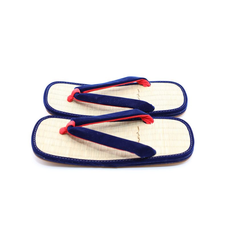 Il s'agit d'une paire de sandales setta fabriquées à partir du modèle original « Kishu Igusa » de la boutique IdoTatami. Le confort de port est caractérisé par une sensation douce et agréable, comme si l'on marchait sur un tatami. Il existe 84 variantes de couleurs disponibles, ce qui permet de les assortir à différents styles, notamment avec des jeans ou d'autres tenues décontractées, et pas seulement avec des vêtements traditionnels japonais. Pour le modèle masculin, un élément traditionnel connu sous le nom de « batei », une pièce métallique ressemblant à un fer à cheval, est attachée au talon arrière. Le son qu'il produit en faisant un « clic-clac » pendant la marche est considéré comme une touche de style et constitue un artisanat traditionnel connu pour son histoire.