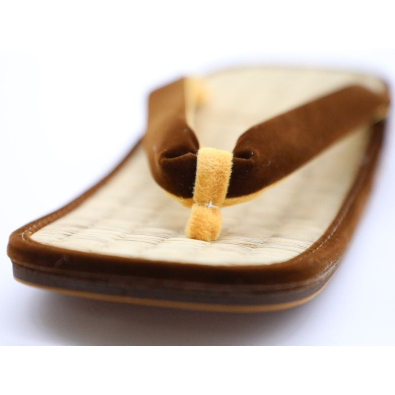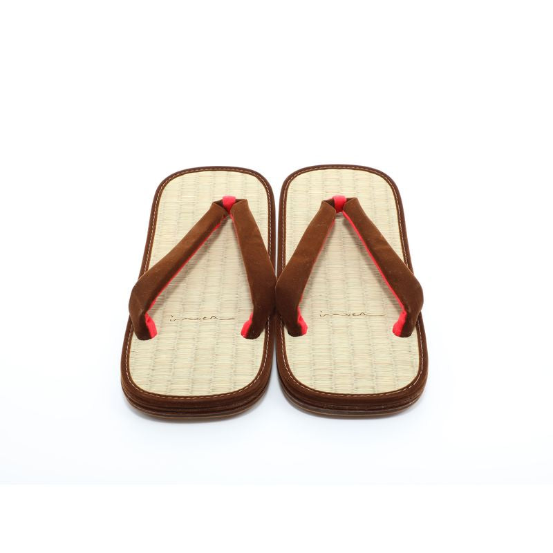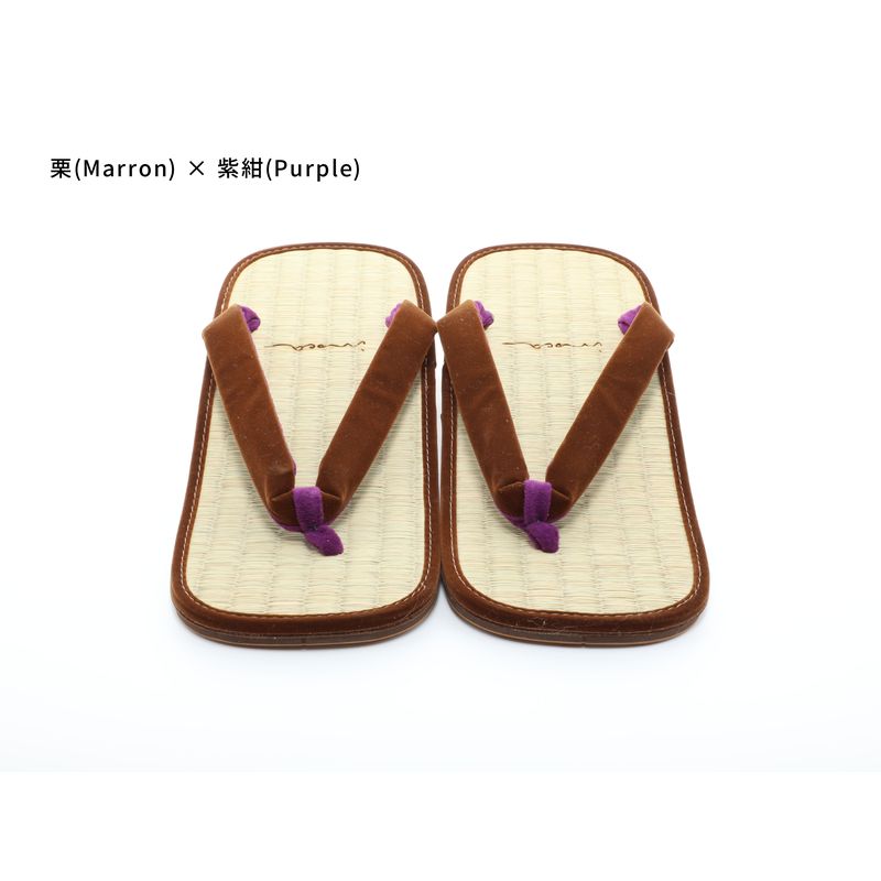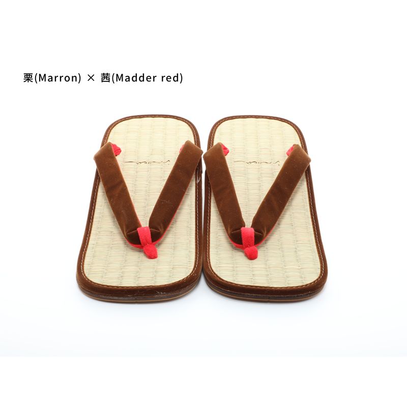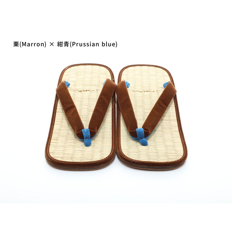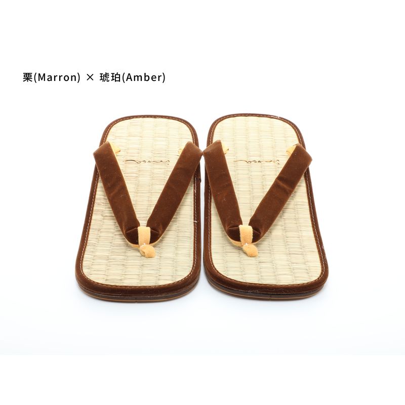 Il s'agit d'une paire de sandales setta fabriquée à partir du modèle original « Kishu Igusa » de la boutique IdoTatami. Le confort de port est caractérisé par une sensation douce et agréable, comme si l'on marchait sur un tatami. Il existe 139 variantes de couleurs disponibles, ce qui permet de les assortir à différents styles, notamment avec des jeans ou d'autres tenues décontractées, et pas seulement avec des vêtements japonais traditionnels. Pour le modèle masculin, un élément traditionnel connu sous le nom de « batei », une pièce métallique ressemblant à un fer à cheval, est attachée au talon arrière. Le son qu'il produit en faisant un « clic-clac » pendant la marche est considéré comme une touche de style et constitue un artisanat traditionnel connu pour son histoire.