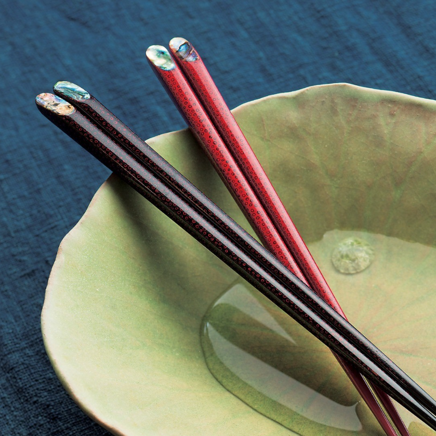 Wakasa lacquerware, which involves layering lacquer multiple times, has a history of 400 years and continues to evolve with the skills of artisans. Layer by layer, one, two, three, the artisans' dedication is carefully applied to create ISSOU chopsticks.
