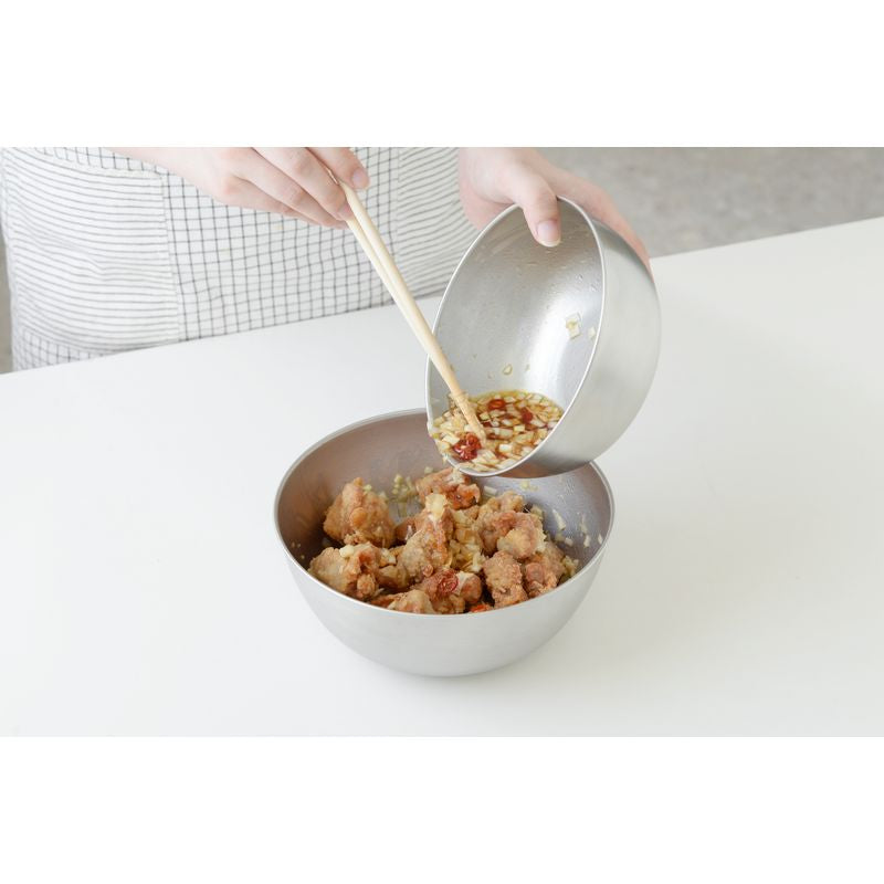 This stainless steel bowl is made of a new material, "New Galaxy," which has a fine uneven finish. The stainless steel is durable and corrosion-resistant, and its matte texture gives it a luxurious appearance.
