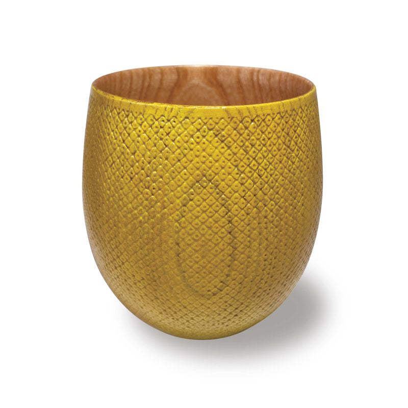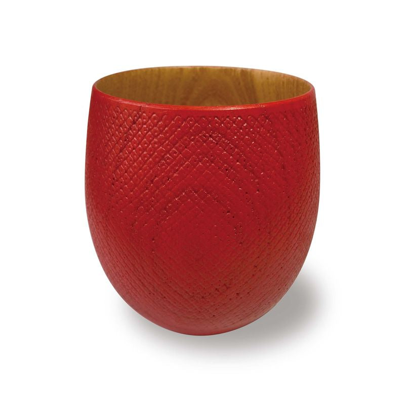 The entire surface of the cup is engraved with a pattern called "hikita shikako," which is commonly used in the traditional Kyoto craft of Kyoka tie-dyeing. This pattern has been carefully designed to eliminate visible seams, effectively serving as a non-slip surface. Additionally, the cup is coated with glass, allowing it to be washed with a mild detergent.