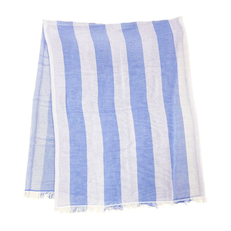 This oversized stole features a supple, lustrous double-gauze weave crafted from premium extra-long staple cotton. The design pairs a stylish striped front with a solid reverse, allowing you to enjoy the sophisticated transparency and depth of overlapping colors. This versatile accessory offers exceptional breathability for a refreshing feel in spring and summer, while its airy structure retains gentle warmth during autumn and winter for year-round comfort.
