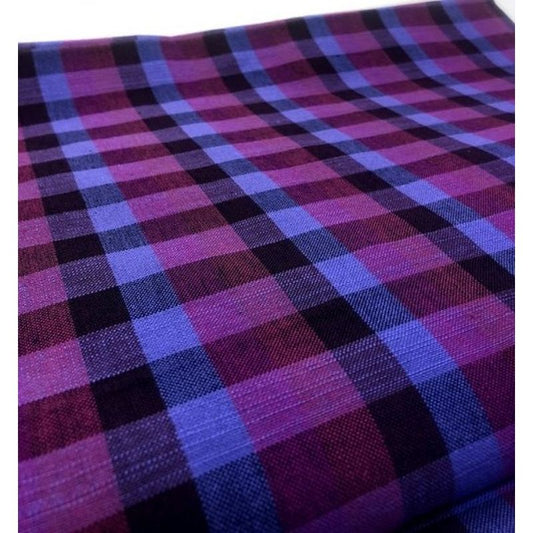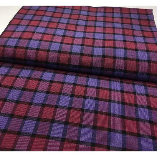 ผ้า KURUME KASURI - ลายตารางด้ายไม่เท่ากัน สีแดงเข้ม สีม่วง สีดำ