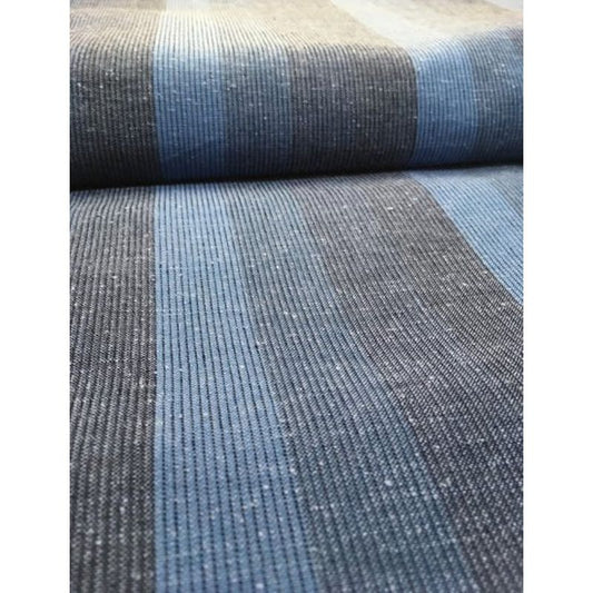 ผ้า KURUME KASURI - ลาย Chijimi Weaving ลายสตรีป ลายกัตเซาสีน้ำเงิน