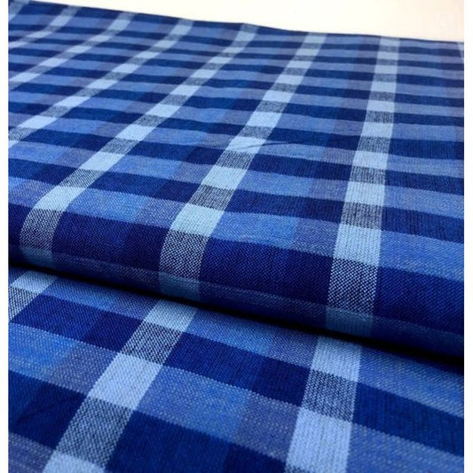 ผ้า KURUME KASURI - เส้นด้ายไม่เท่ากันลายตารางสีน้ำเงิน