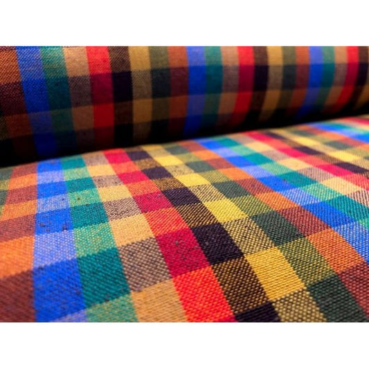 ผ้าโครมะคาสุริ - ตรวจสอบเส้นไหมไม่สม่ำสี สีแดงเข้ม สีน้ำเงิน