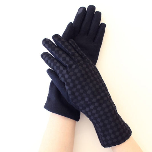 絲綢手套-環狀天鵝絨黑色格紋圖案