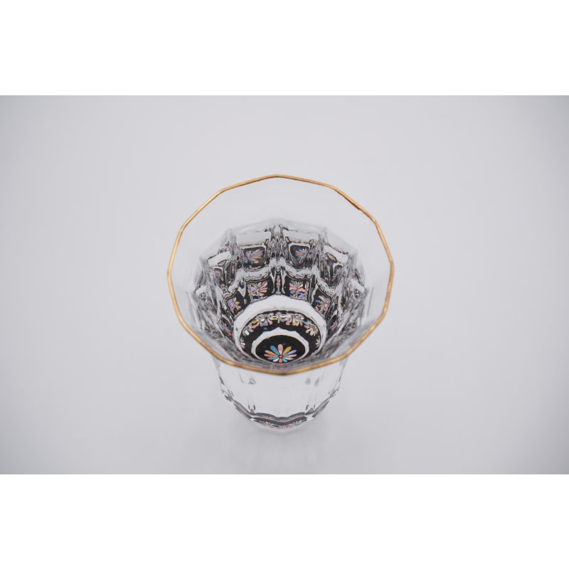 When you pour sake into this luxurious gold-rimmed dodecagon glass, the intricate inlay reflects off the crystalline surfaces. The mystical brilliance of the shellwork radiates throughout the glass like a kaleidoscope, transforming every sip into a visual spectacle.