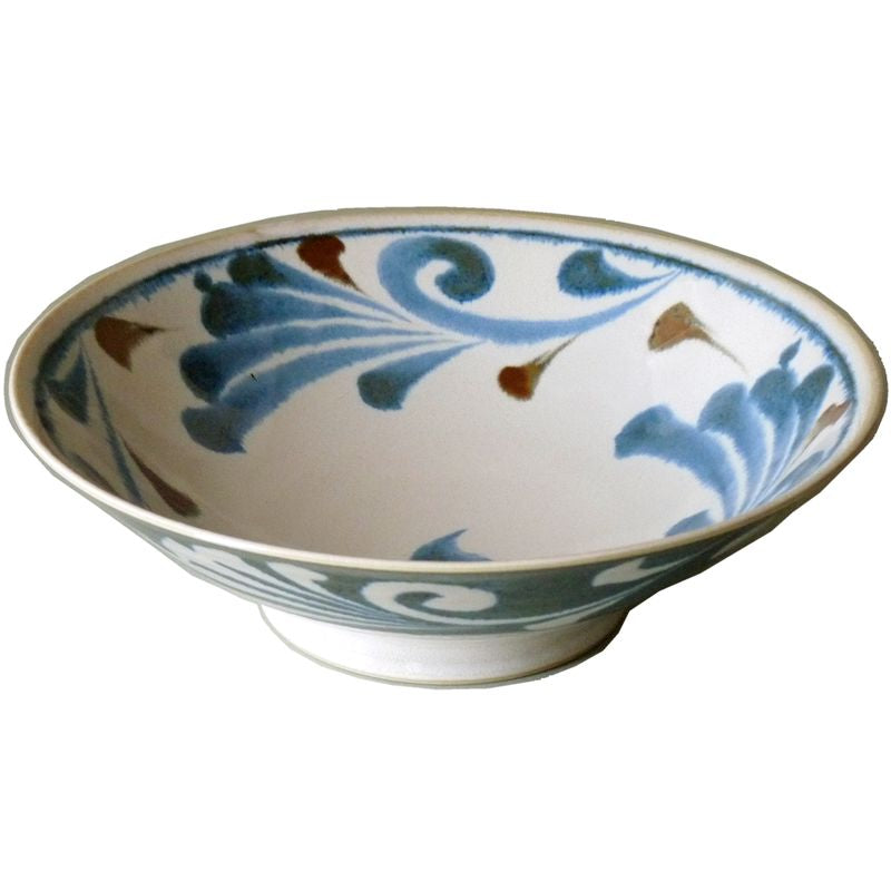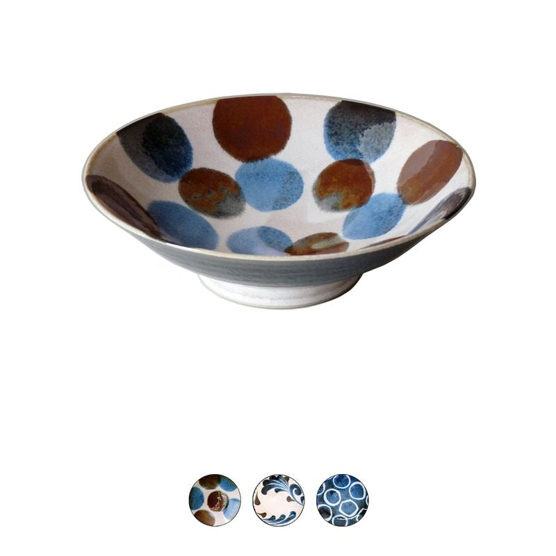 “刷藍”是一種容器,讓您享受靛藍色和手繪質感。在製造過程中,顏色強度、釉料流動和圖案漏色的變化使每件作品呈現獨特外觀。這種獨特性成為其特色,使每件物品獨一無二。請品味手繪質感。這是一個適用於日式和西式的時尚麵碗。它不僅適合麵食,還適合米飯盤。
